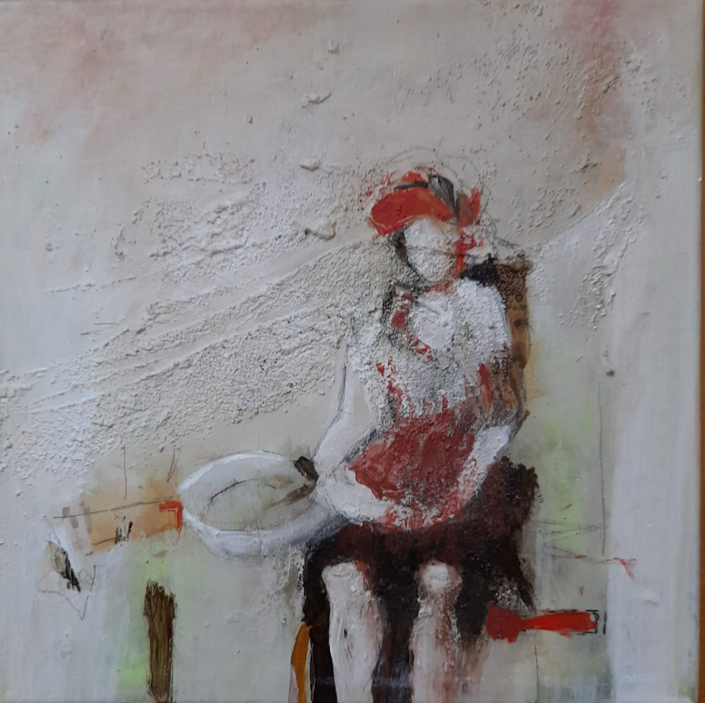 Oma wartet auf... 30 x 30 cm, Acryl auf Karton