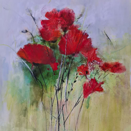 Mohnblumen 60 x 60 cm, Acryl Mischt. auf Leinwand