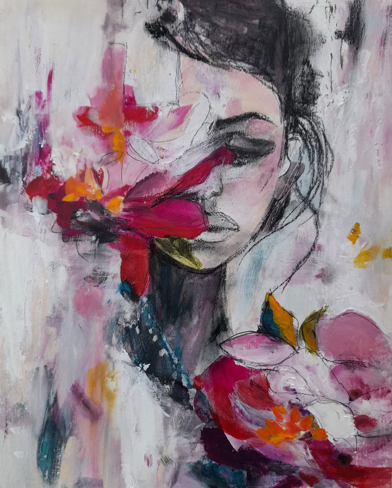 Blumengruß 50 x 50 cm, Acryl auf Leinwand