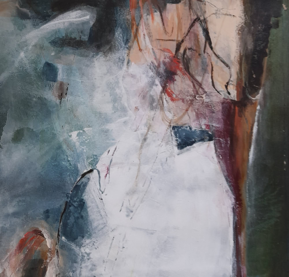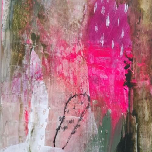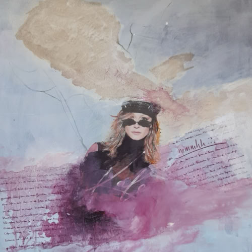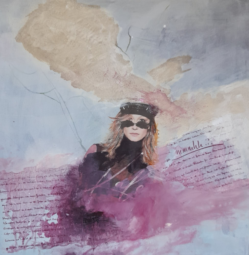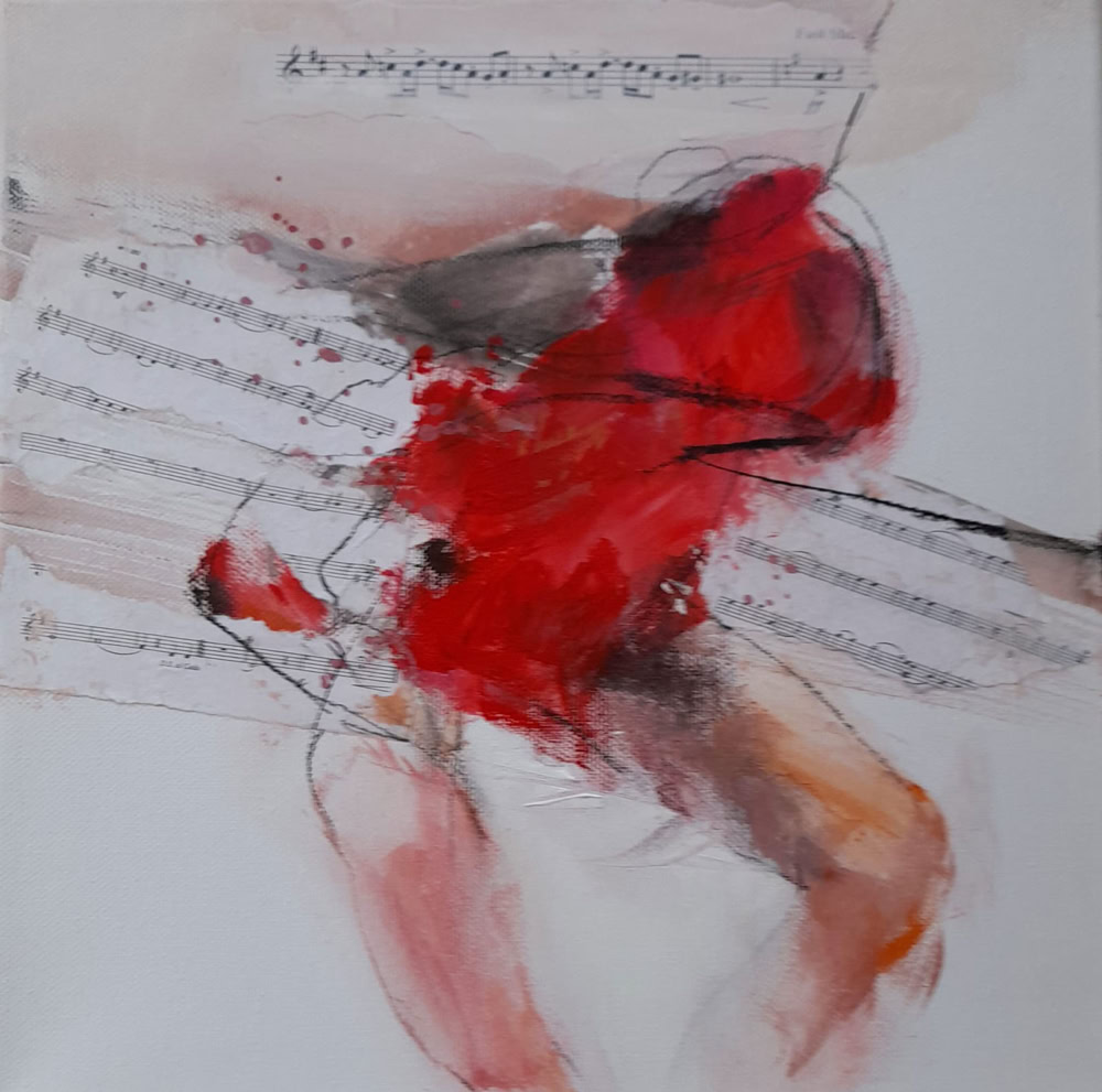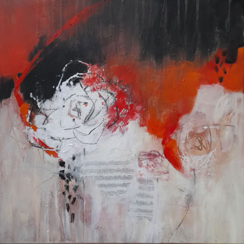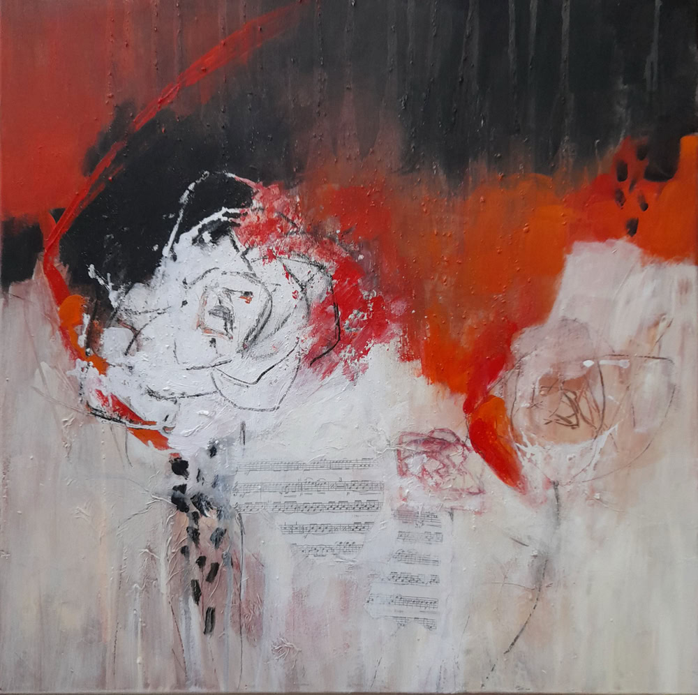 Musik liegt in den Rosen 60 x 60 cm, Acryl-Collage-Mischt. auf Leinwand