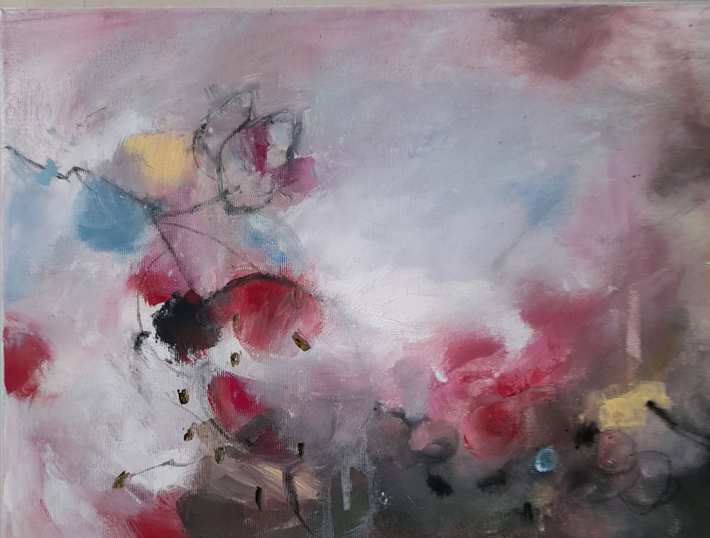 Gartenträume 30 x 40 cm, Acryl-Mischt. auf Leinwand