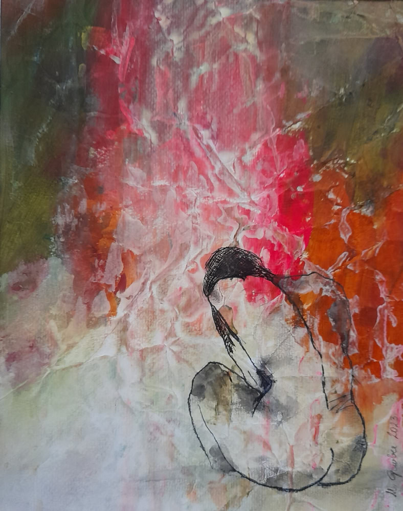 Freude 34 x 27 cm, Acryl -Mischtechnik auf Papier